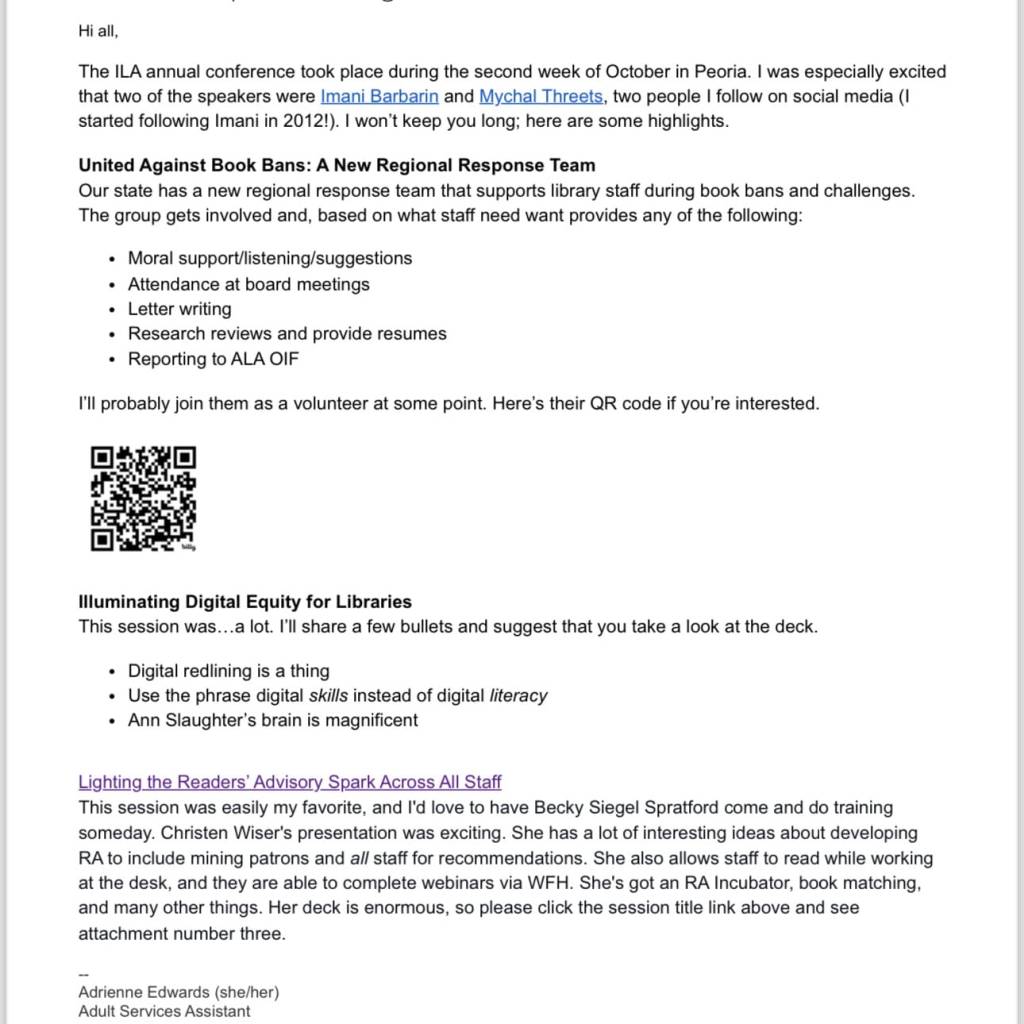 ILA was amazing and overwhelming (in a lovely way). Work covered all the costs, but one of the requirements is that when they do so, staff must email the department with a debrief and takeaways about the event.